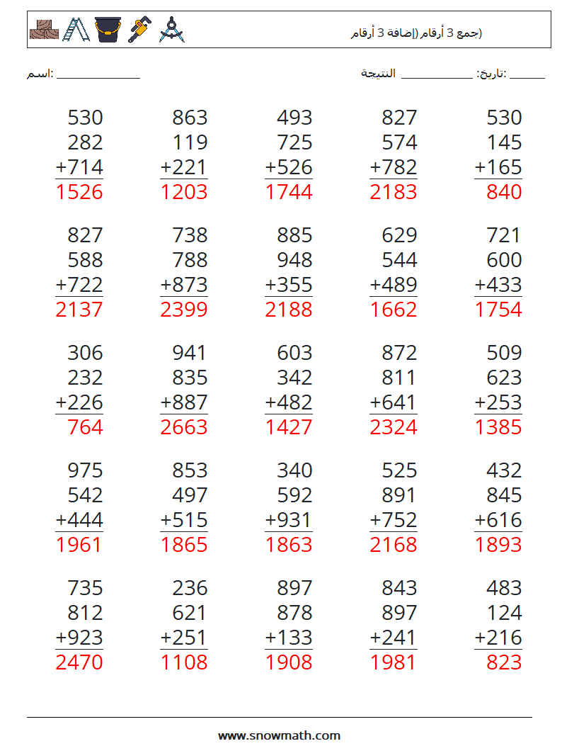 (25) جمع 3 أرقام (إضافة 3 أرقام)