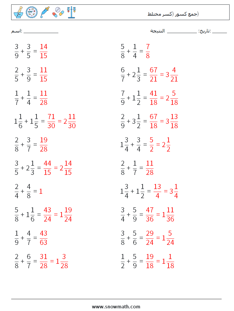 (20) جمع كسور (كسر مختلط)