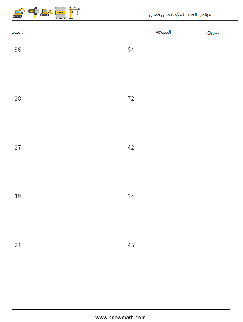 عوامل العدد المكون من رقمين أوراق عمل الرياضيات 2