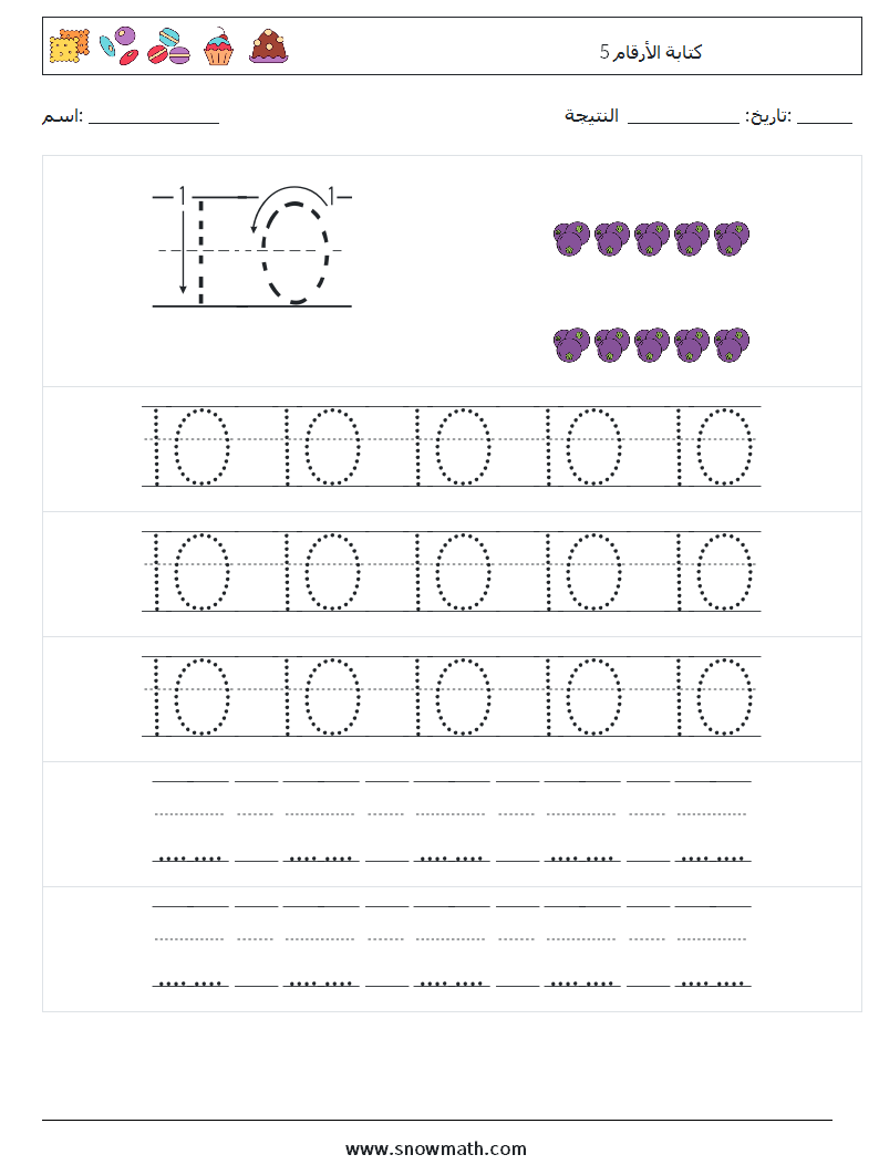 كتابة الأرقام 5 أوراق عمل الرياضيات 22