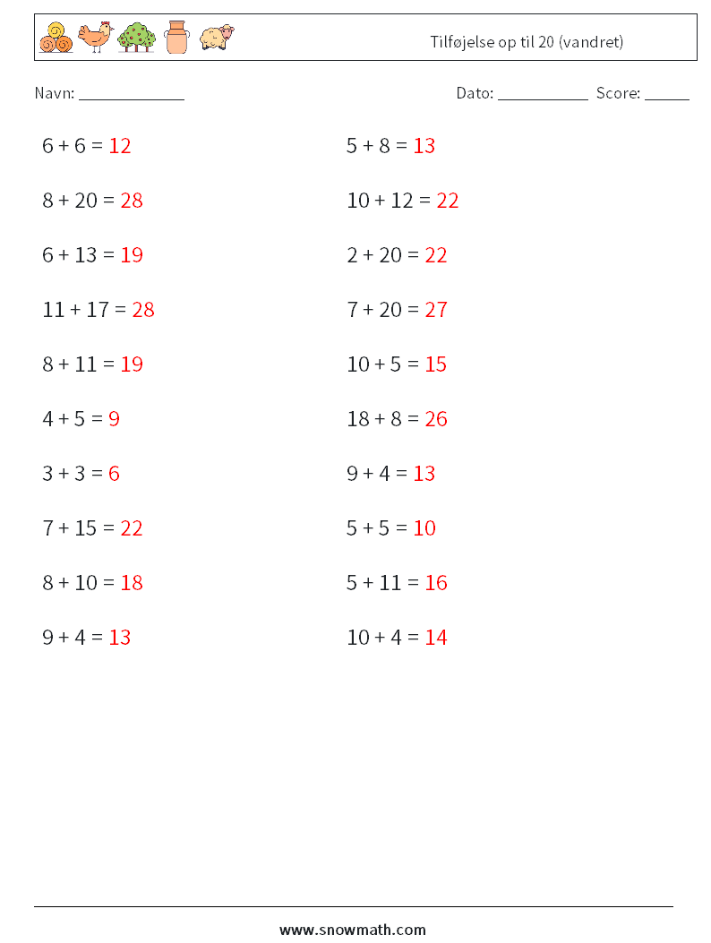 (20) Tilføjelse op til 20 (vandret)