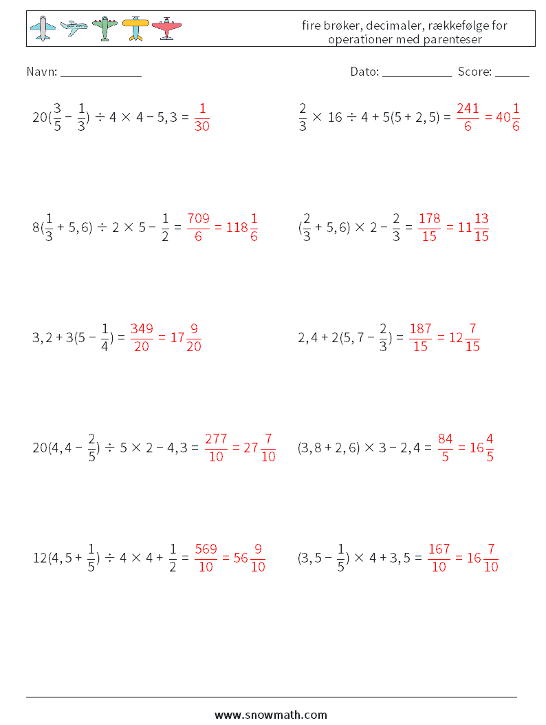 (10) fire brøker, decimaler, rækkefølge for operationer med parenteser