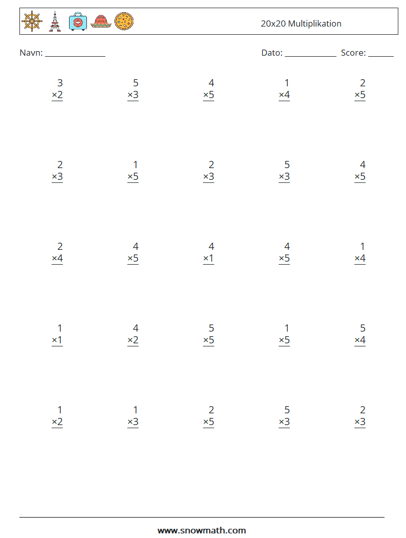 (25) 20x20 Multiplikation Matematiske regneark 5
