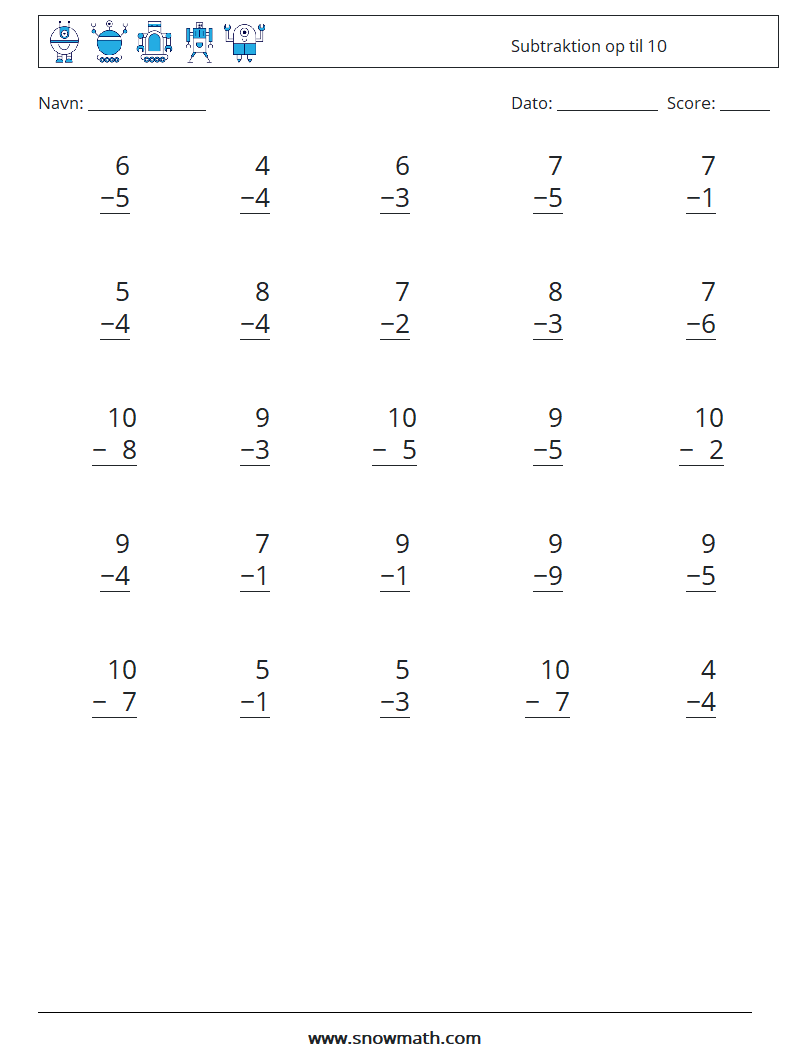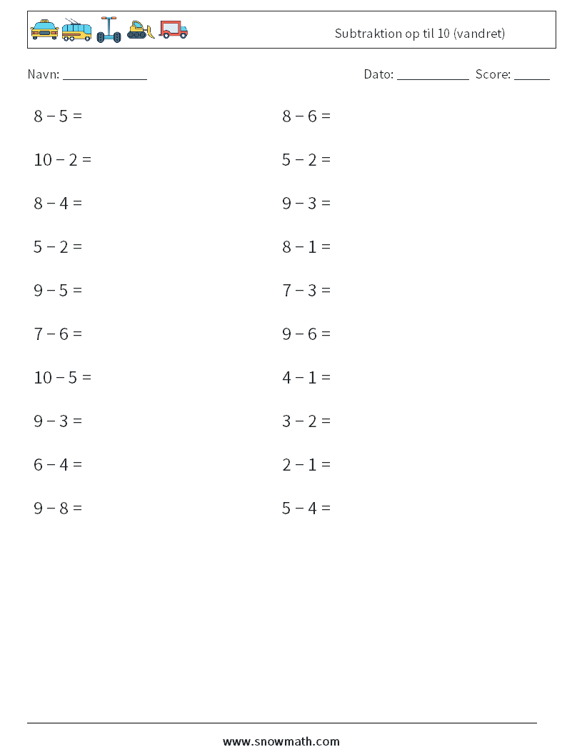 (10) subtraktion af brøker (korrekt brøk) (forkert brøk)