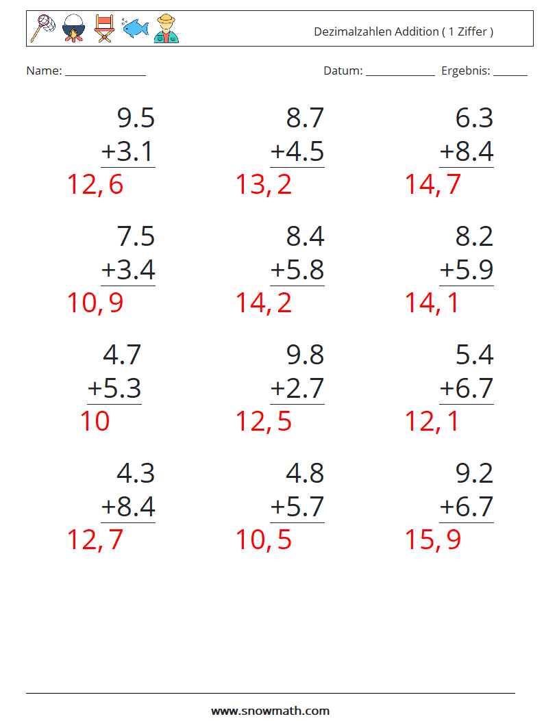 (12) Dezimalzahlen Addition ( 1 Ziffer )