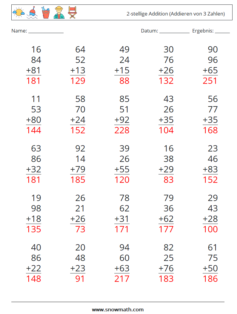 (25) 2-stellige Addition (Addieren von 3 Zahlen)