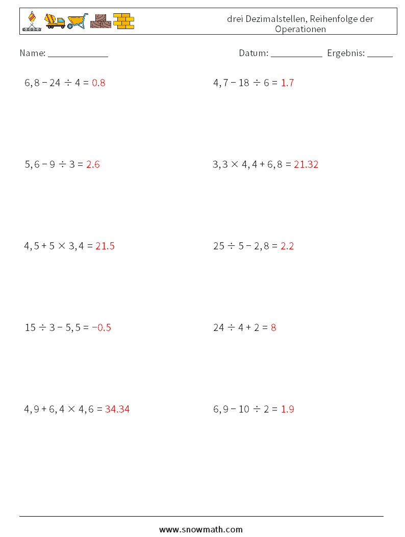 (10) drei Dezimalstellen, Reihenfolge der Operationen