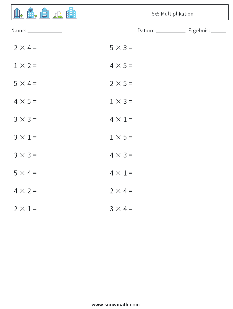 (20) 5x5 Multiplikation Mathe-Arbeitsblätter 4
