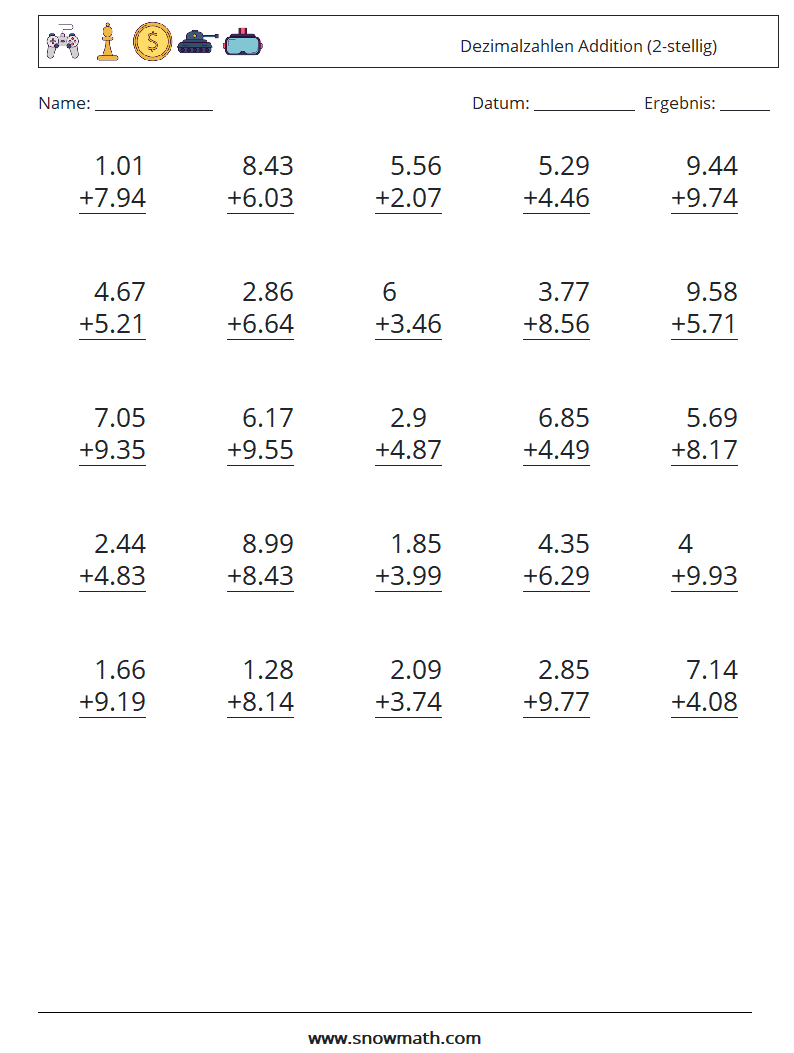 (25) Dezimalzahlen Addition (2-stellig)