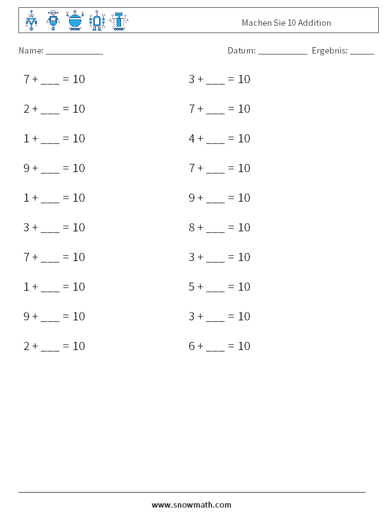 (12) Dezimalzahlen Addition ( 1 Ziffer )