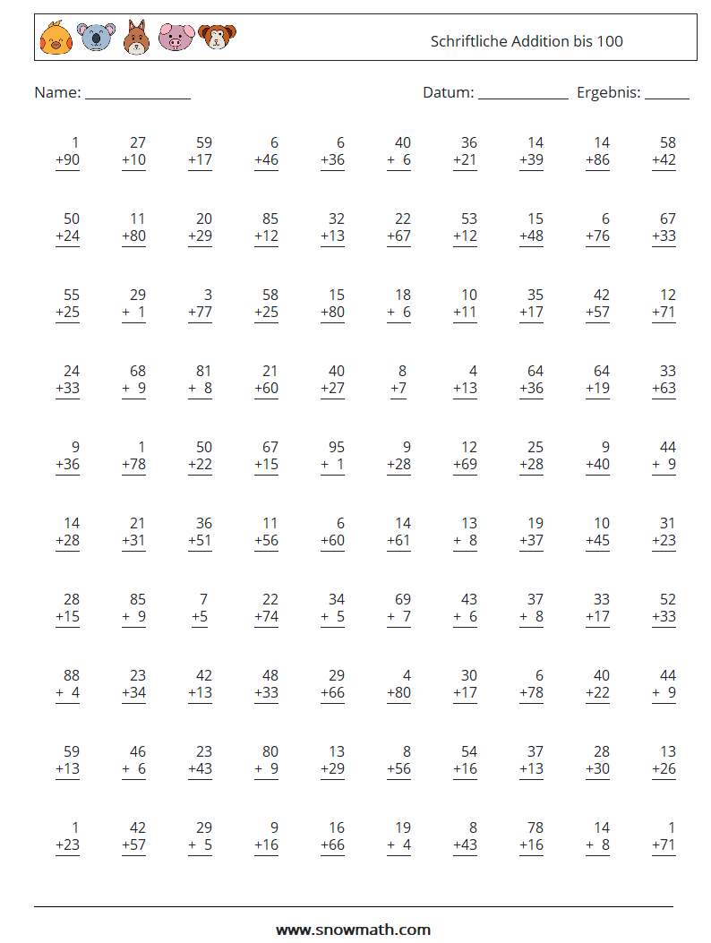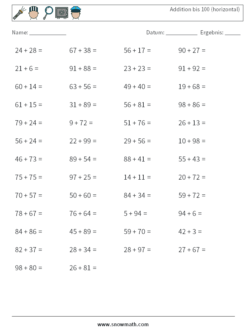 (25) 2-stellige Addition (Addieren von 4 Zahlen)