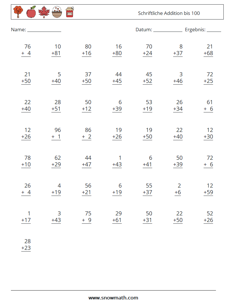 (25) 2-stellige Addition (Addieren von 3 Zahlen)