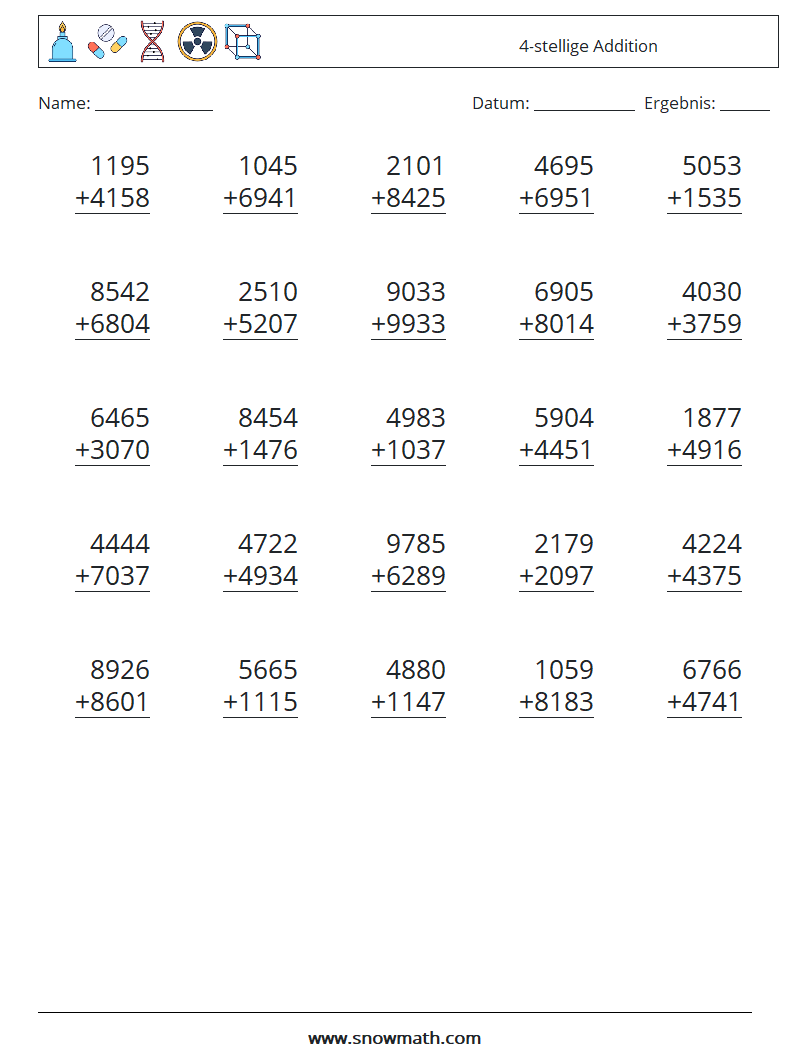 (25) 4-stellige Addition (Addieren von 4 Zahlen)