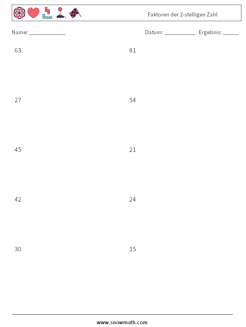 (50) Subtraktion innerhalb von 20 (horizontal)
