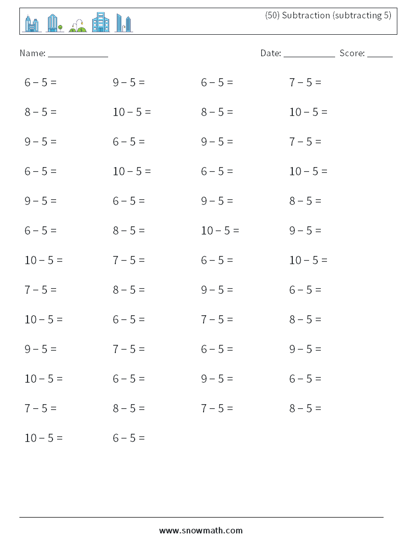 (50) Subtraction (subtracting 5)