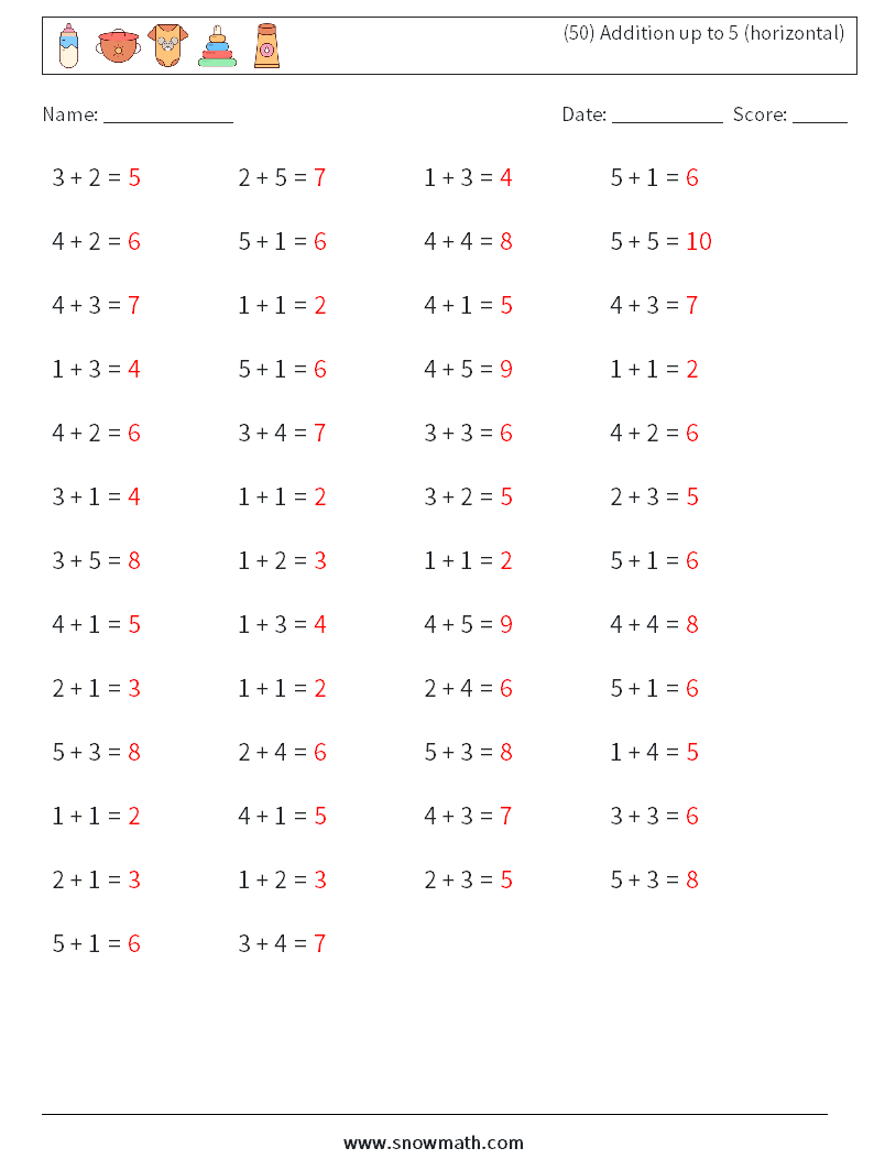 (50) Addition up to 5 (horizontal)