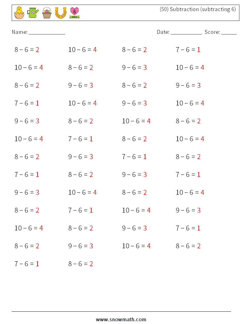 (50) Subtraction (subtracting 6)