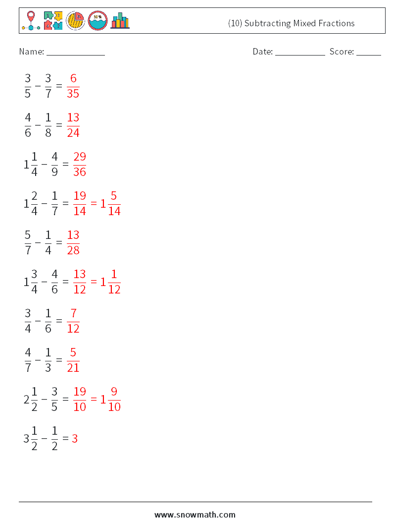(10) Subtracting Mixed Fractions