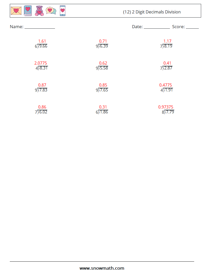 (12) 2 Digit Decimals Division
