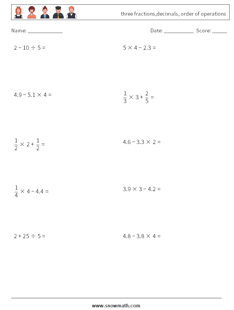 three fractions,decimals, order of operations