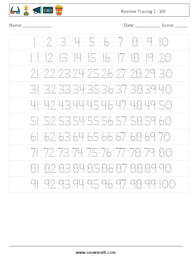 Writing numbers 1 - 100, learning numbers, number tracing, Learn how to write numbers