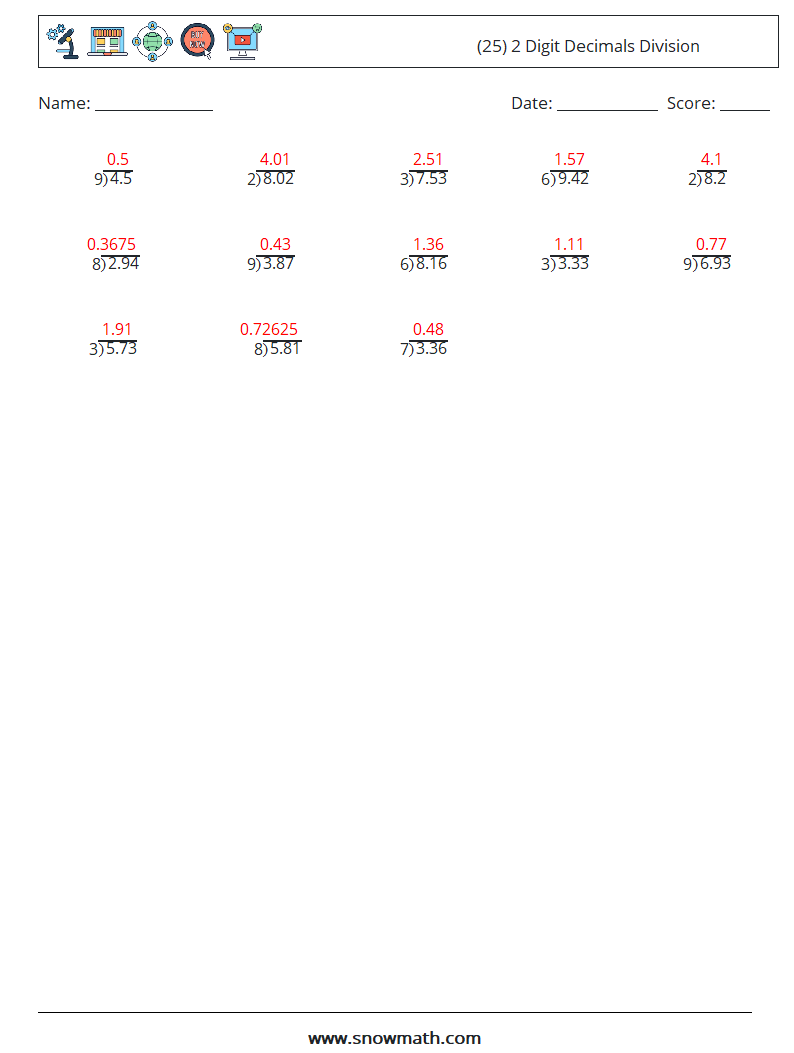 (25) 2 Digit Decimals Division