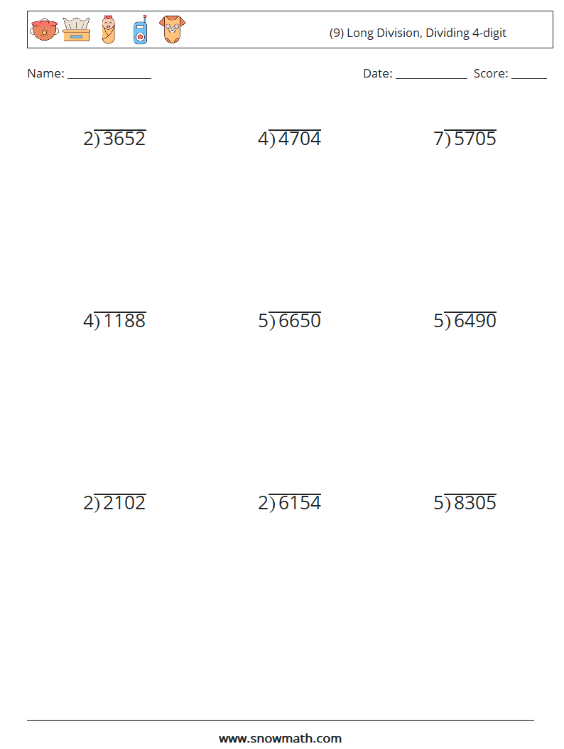(9) Long Division, Dividing 4-digit Math Worksheets 6