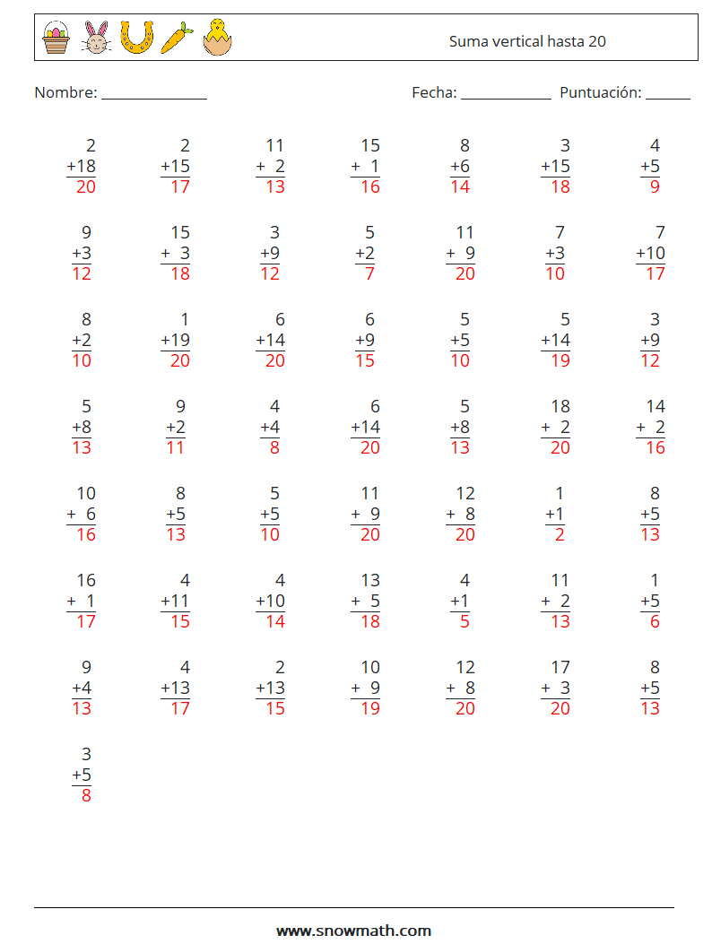 (50) Suma vertical hasta 20