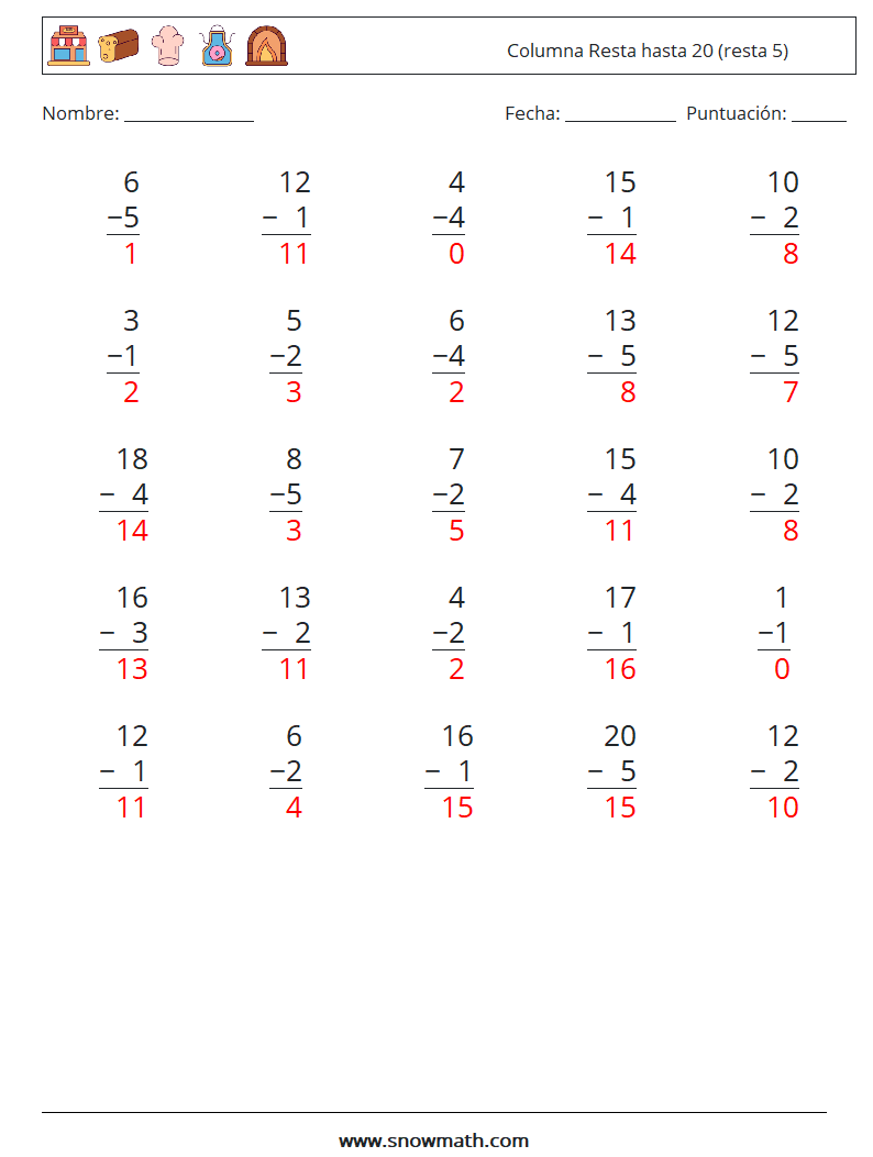 (25) Columna Resta hasta 20 (resta 5)