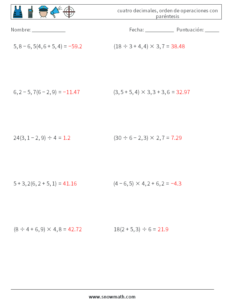 (10) cuatro decimales, orden de operaciones con paréntesis
