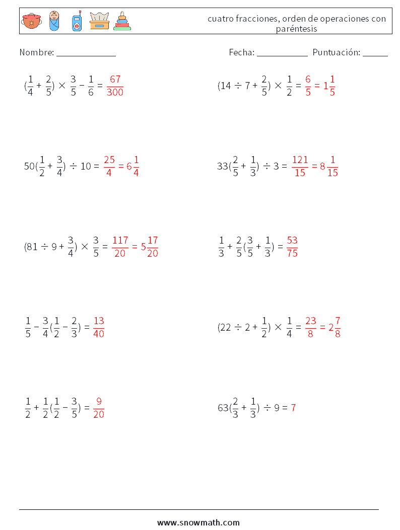 (10) cuatro fracciones, orden de operaciones con paréntesis