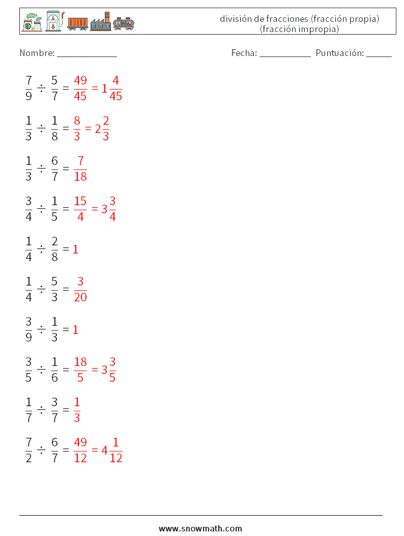 (10) división de fracciones (fracción propia) (fracción impropia)