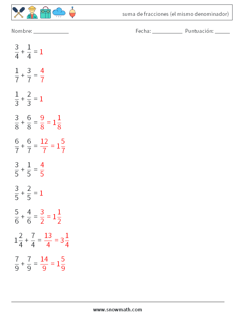 (10) suma de fracciones (el mismo denominador)