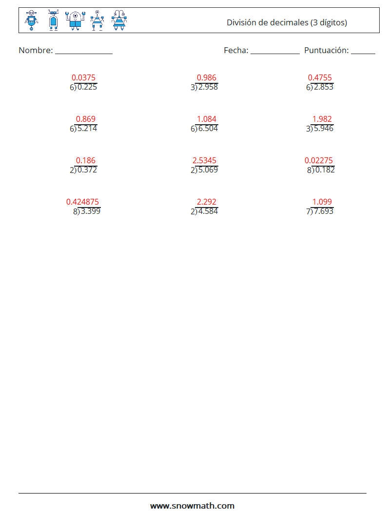 (12) División de decimales (3 dígitos)