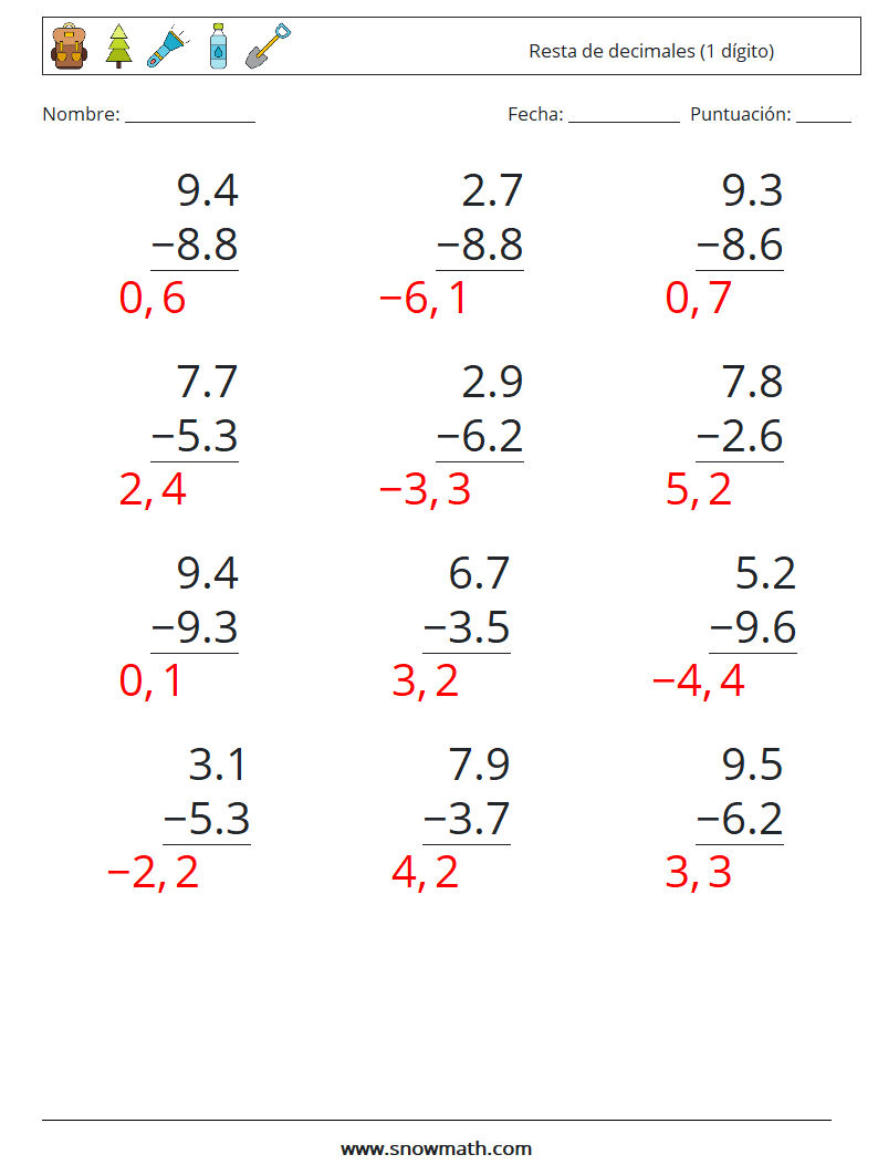 (12) Resta de decimales (1 dígito)