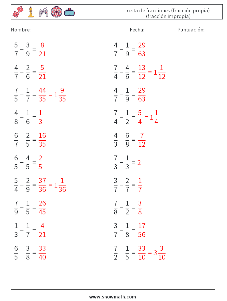 (20) resta de fracciones (fracción propia) (fracción impropia)