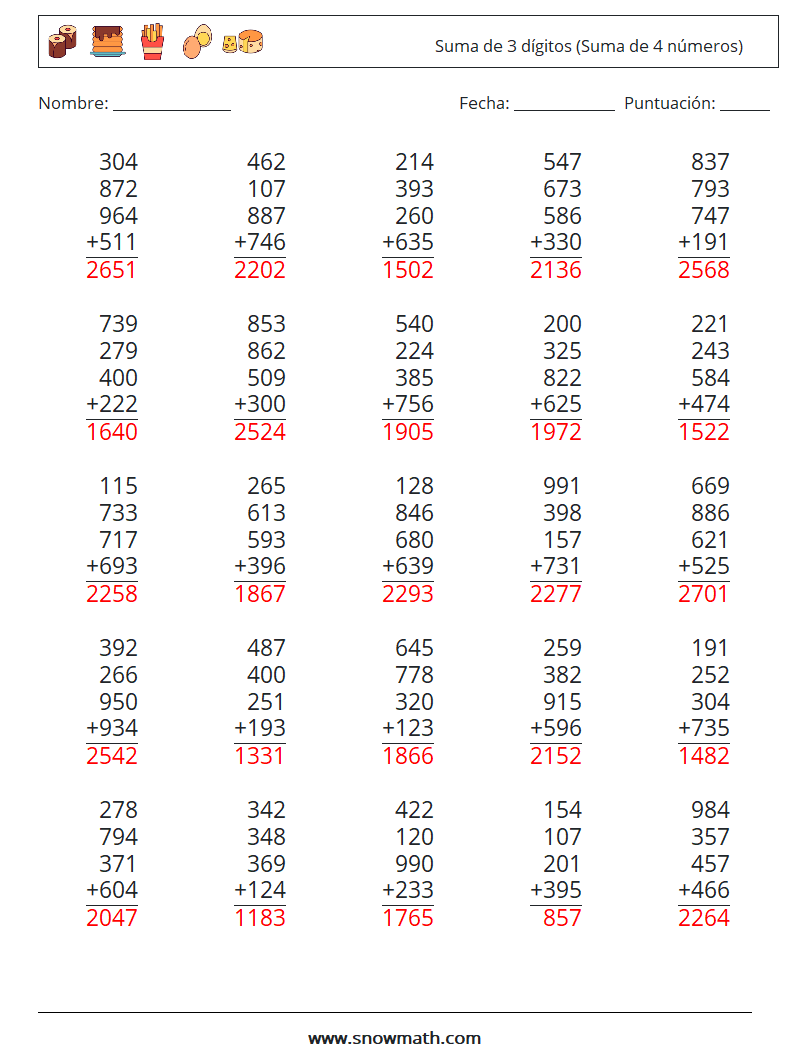 (25) Suma de 3 dígitos (Suma de 4 números)