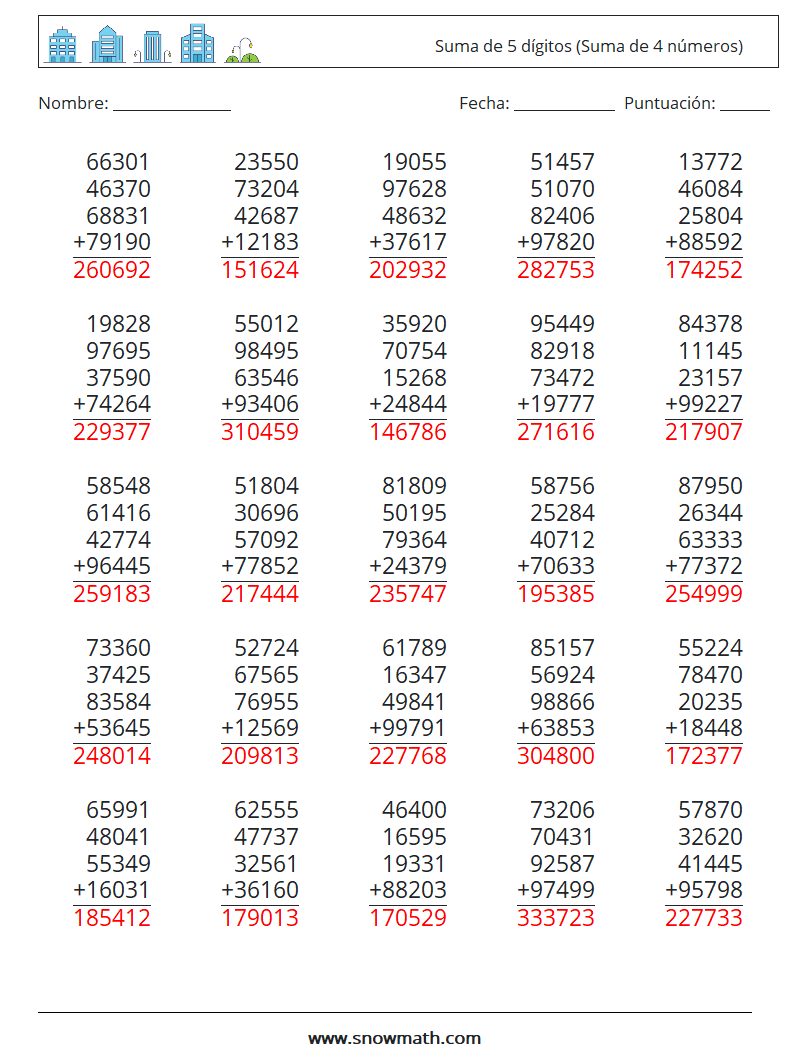 (25) Suma de 5 dígitos (Suma de 4 números)