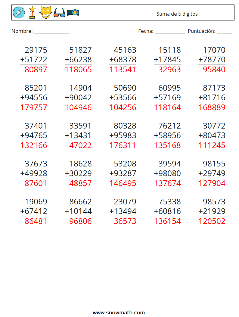 Suma de 5 dígitos