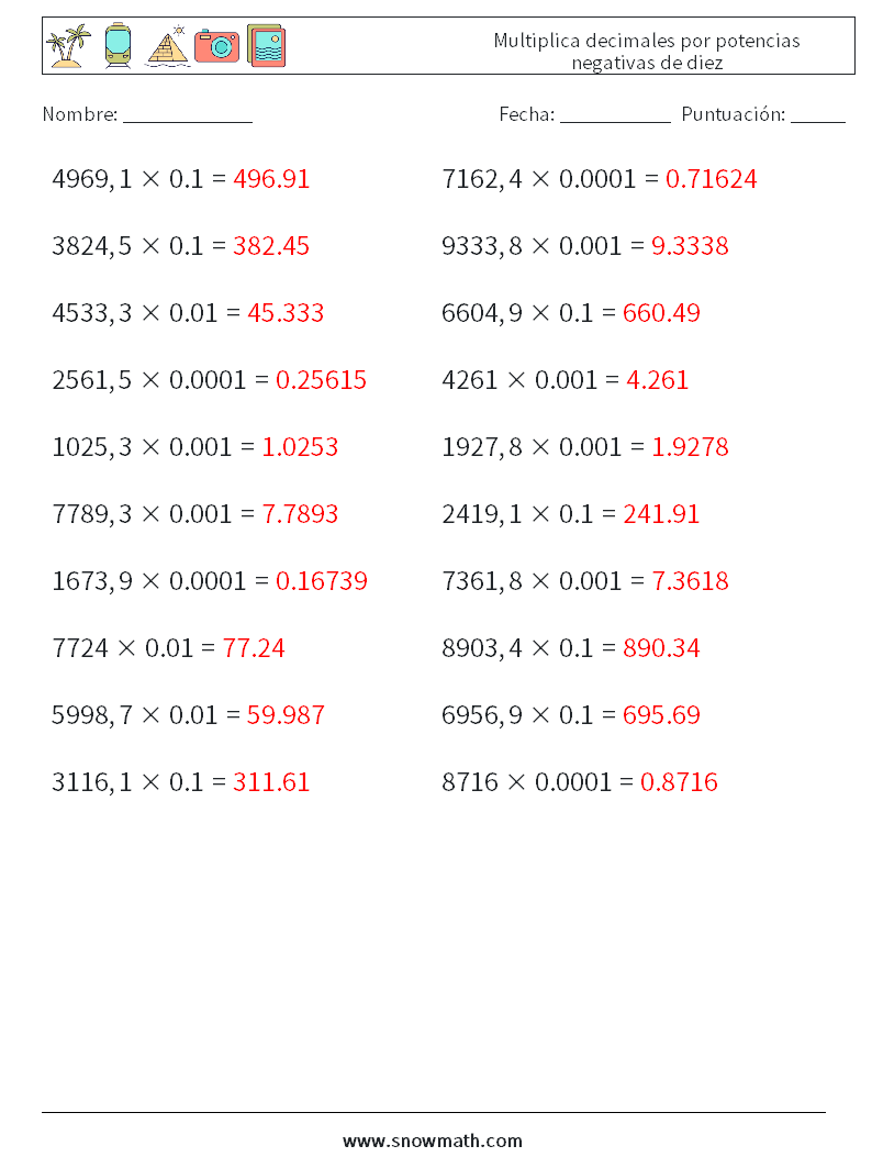 Multiplica decimales por potencias negativas de diez