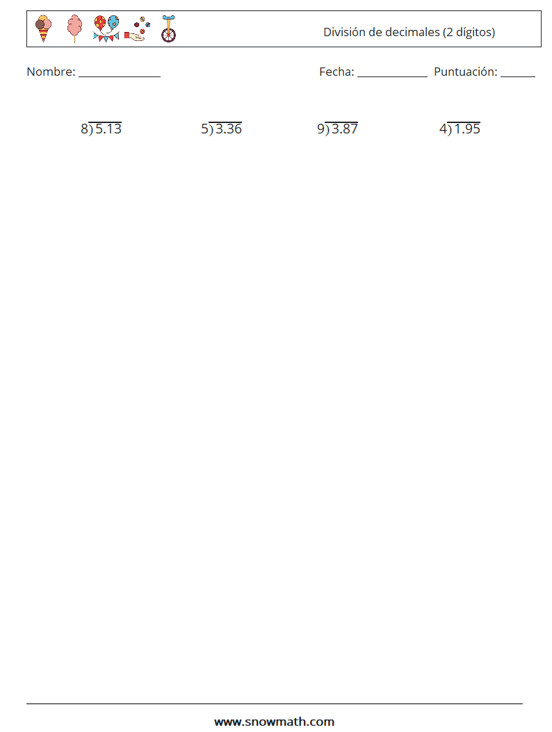 (25) División de decimales (2 dígitos) Hojas de trabajo de matemáticas 3