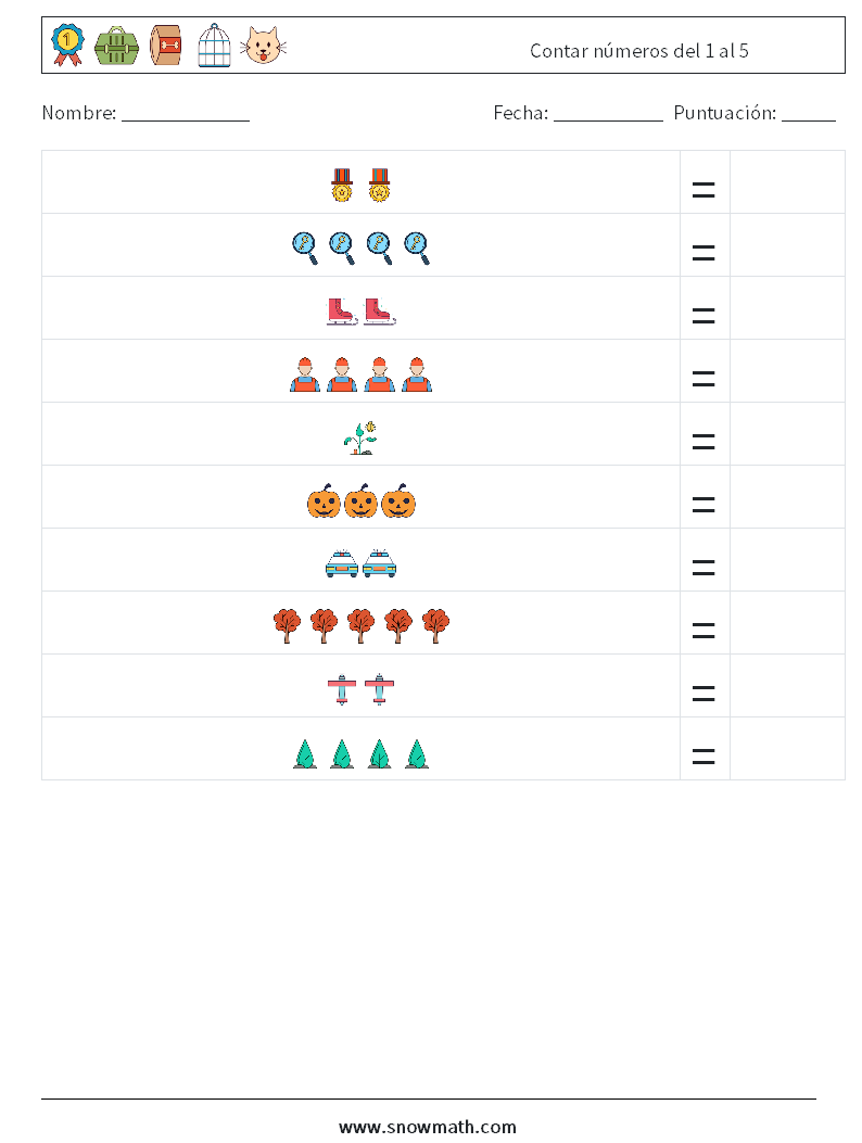 Contar números del 1 al 5 Hojas de trabajo de matemáticas 10