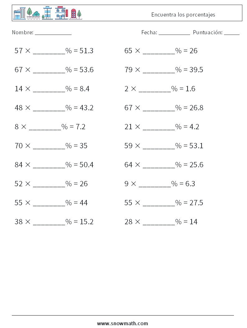 Encuentra los porcentajes Hojas de trabajo de matemáticas 2