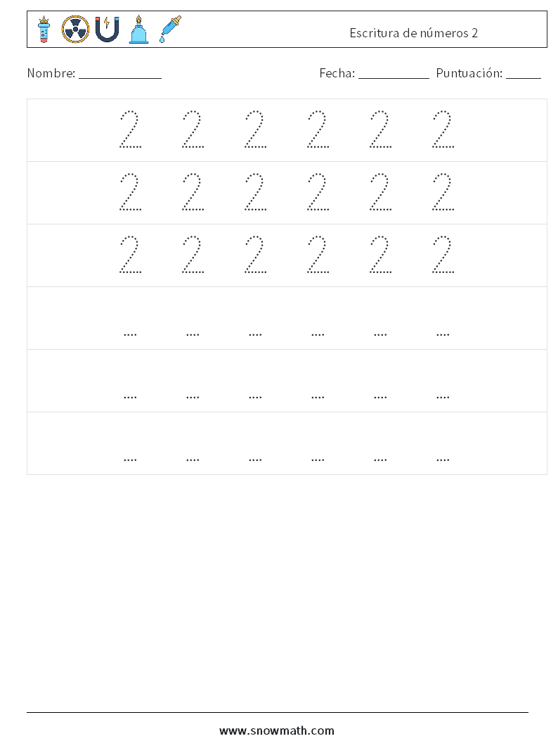 Escritura de números 2 Hojas de trabajo de matemáticas 3