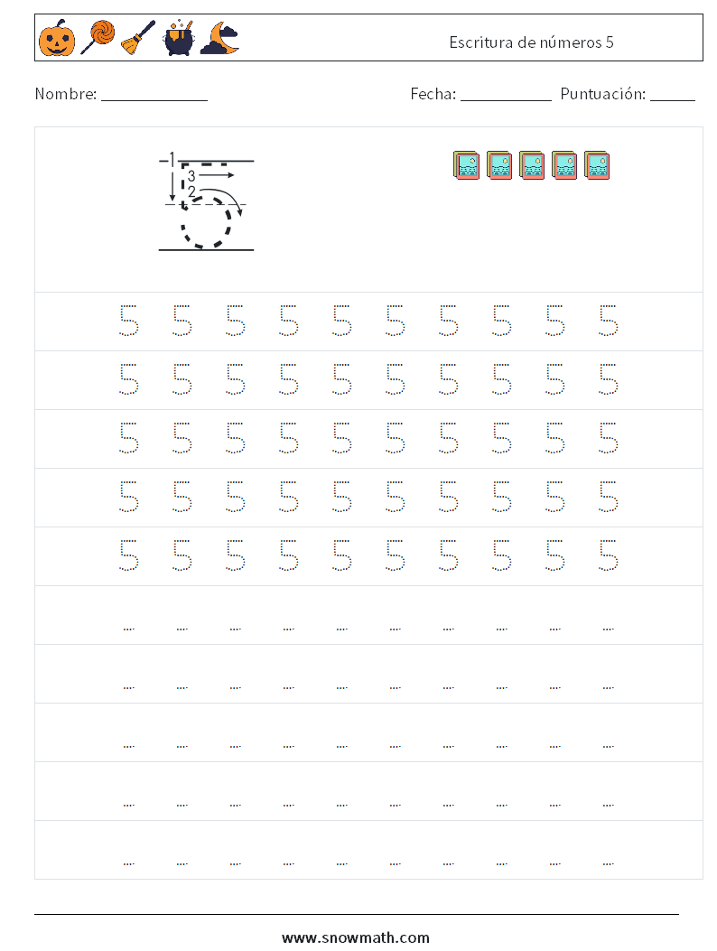 Escritura de números 5 Hojas de trabajo de matemáticas 5