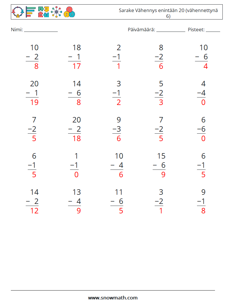 (25) Sarake Vähennys enintään 20 (vähennettynä 6)