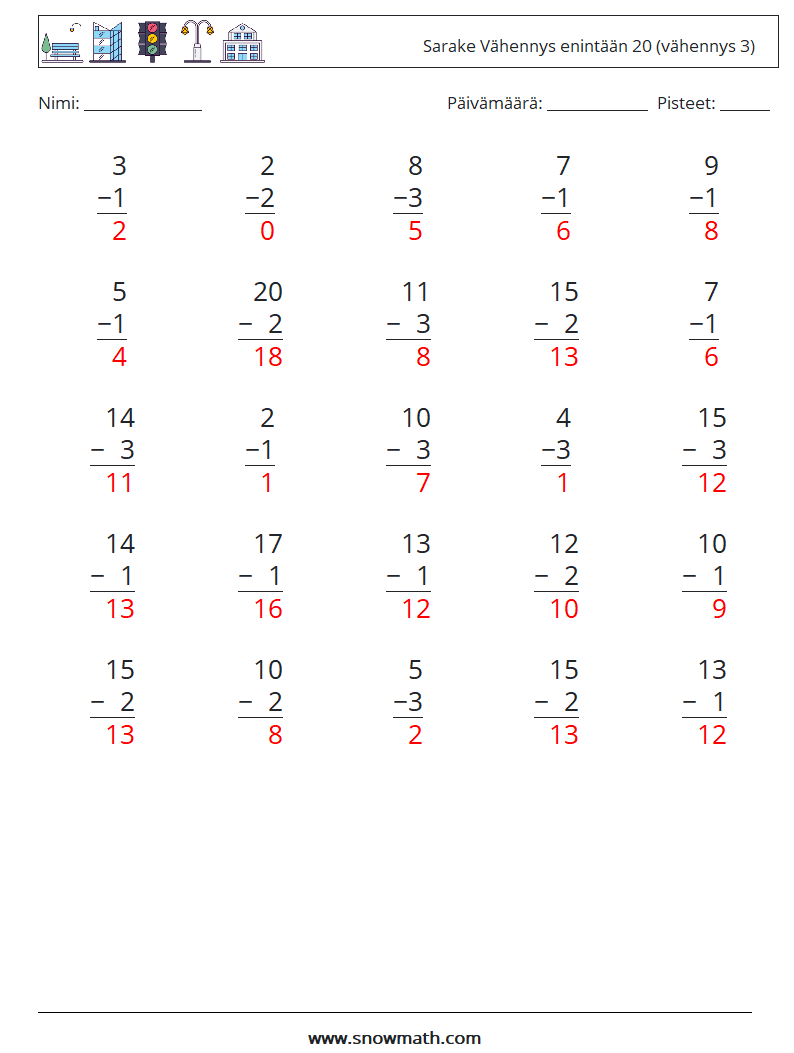 (25) Sarake Vähennys enintään 20 (vähennys 3)