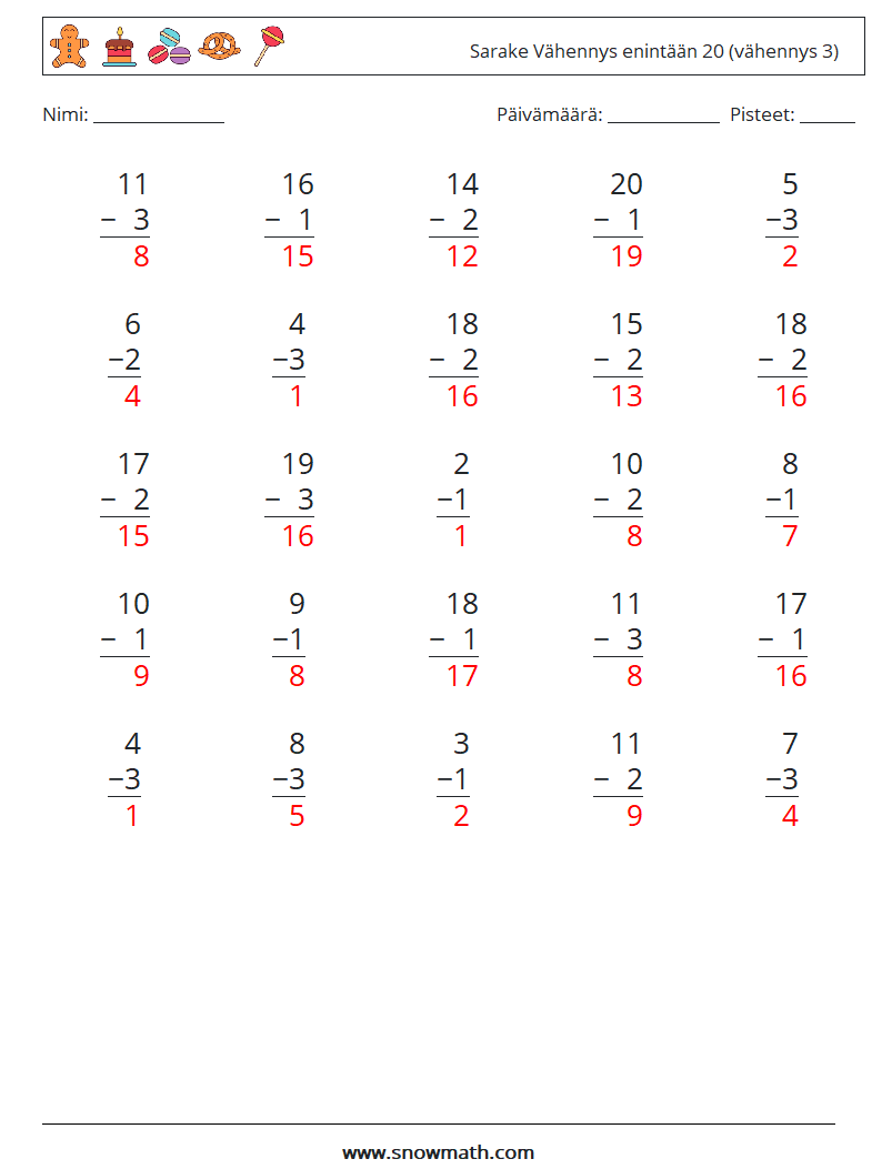 (25) Sarake Vähennys enintään 20 (vähennys 3)