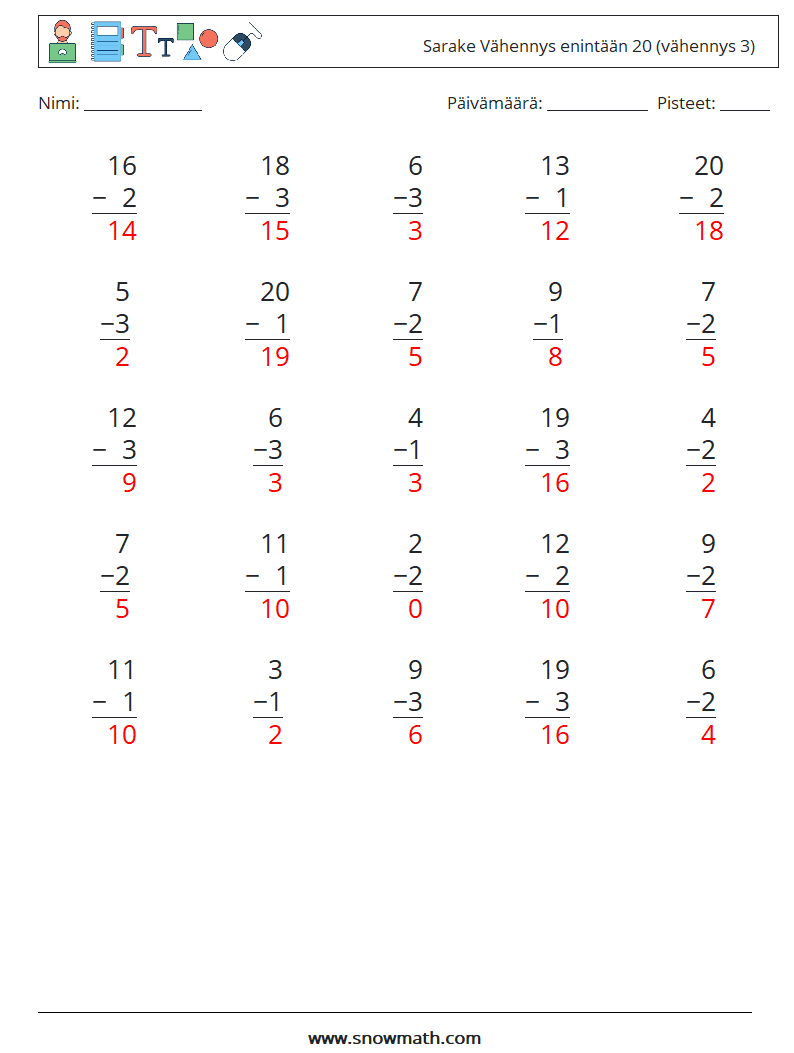 (25) Sarake Vähennys enintään 20 (vähennys 3)