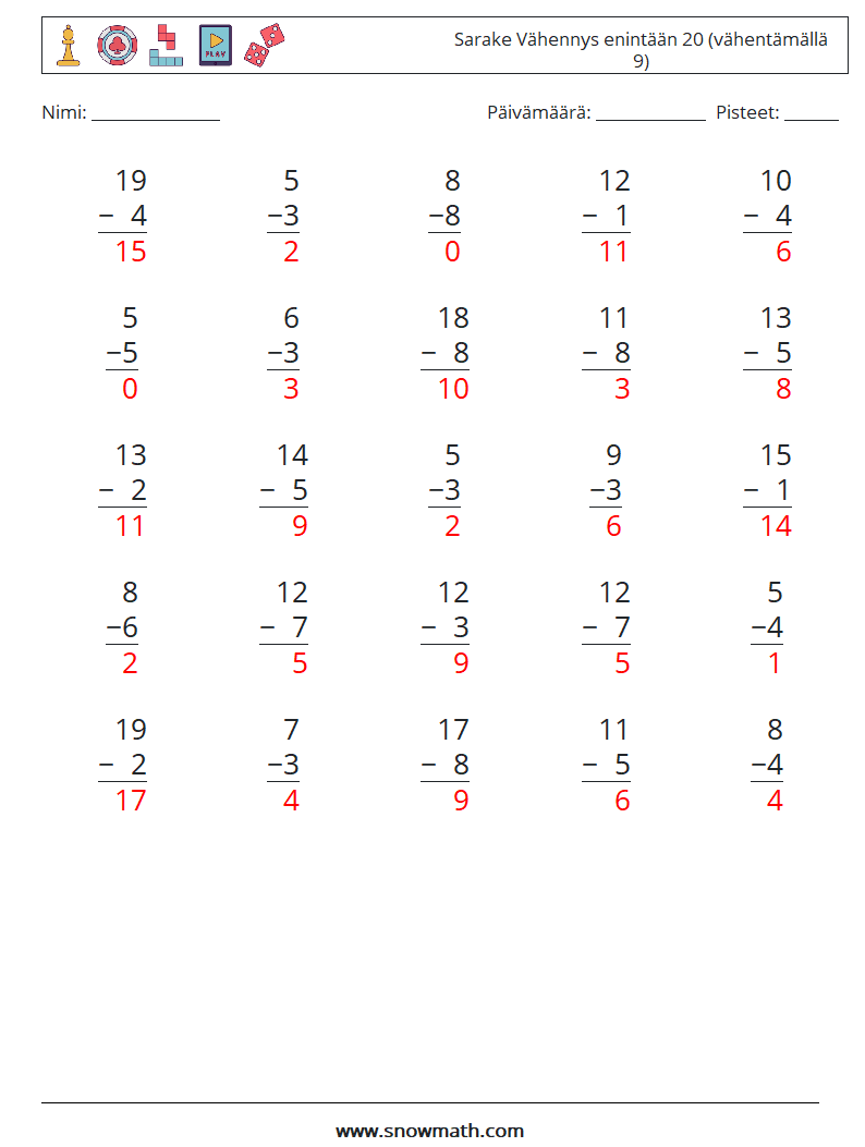 Vähennys 20: n sisällä